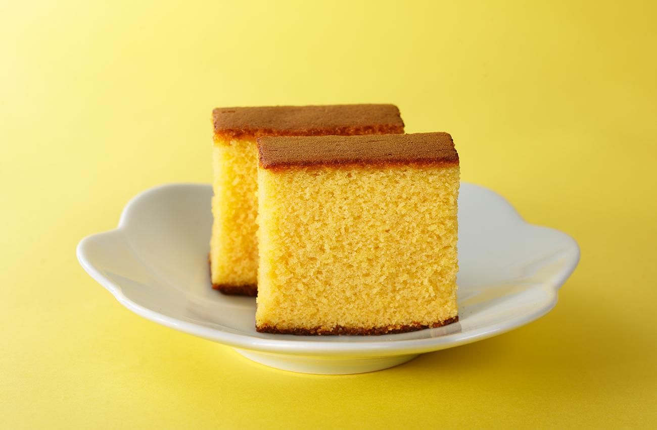 長崎街道カステラの原点。蜂蜜のもつ優しい甘さを生かし、地元で採れた新鮮なたまごを使い、しっとりと焼き上げた生地。底に蒔かれたザラメとの相性もよく「長崎街道カステラ」不動の1番人気商品。