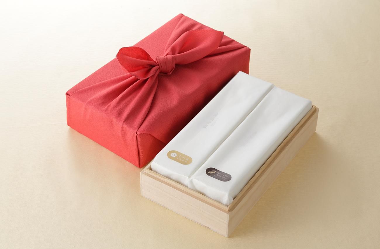 モンドセレクション2020国際金賞受賞と2018・2019・2020の3年連続金賞を受賞した、杉谷本舗至高の「五三焼カステラ」と「プレミアム・ショコラ」。至高のカステラを桐箱におさめました。